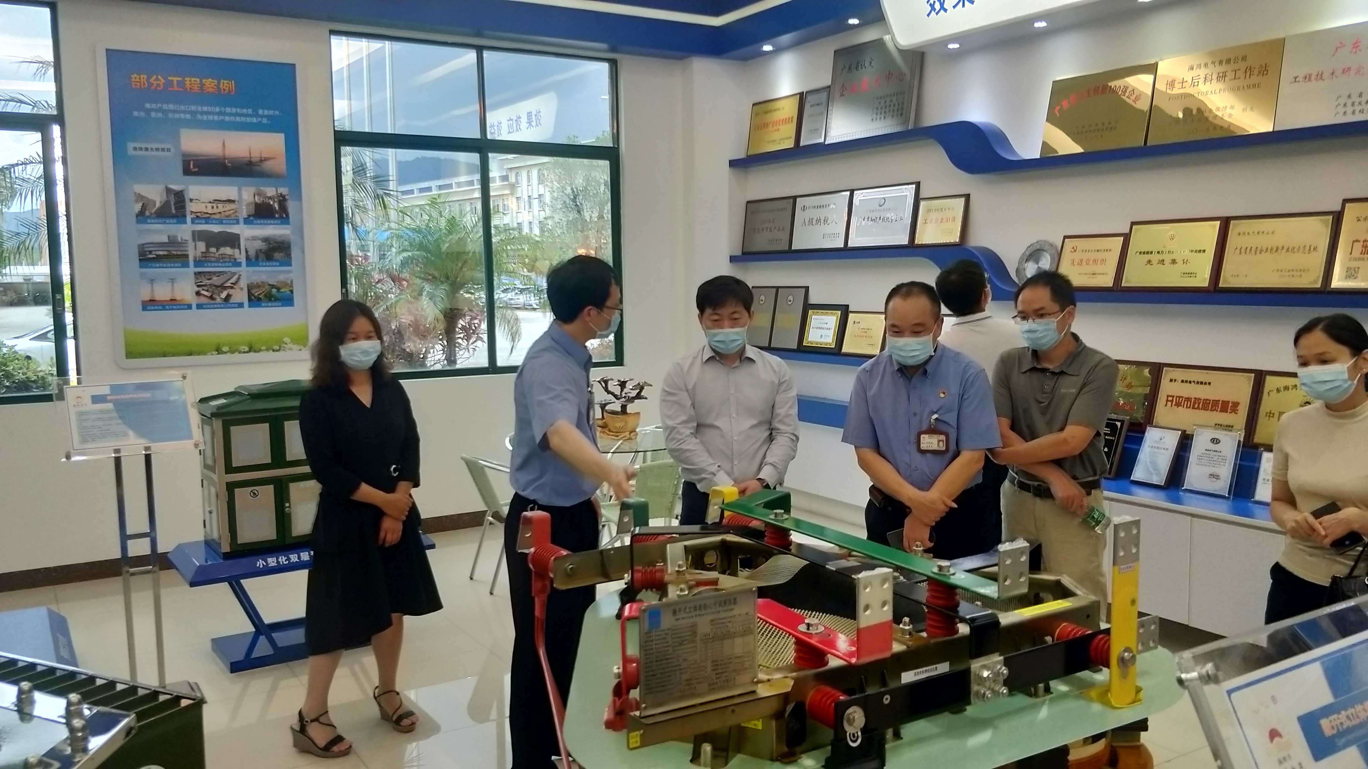 為了更好的實地了解儲能、綠色微電網、高效變壓器等節能與綠色技術發展和應用情況,工業和信息化部節能司王孝洋副司長一行來廣東考察調研,於2021年5月26日蒞臨海鴻電氣有限公司開展走訪調研工作。省工業和信息化廳張振祥總經濟師、開平市人民政府梁健芬副市長等領導以及江門市工業和信息化局、開平市科工商務局等相關部門領導陪同調研。