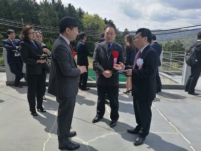 許凱旋董事長受邀參與竣工典禮剪彩        海鴻董事長與華為國際銷售總經理、日本PowerMax公司董事長交談