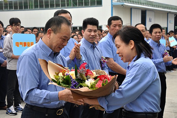 qiyedajiatingchengchangdeershinianzhong,xukaixuandongshichangyizhizhiyinzhewomenqianjindefangxiang。tajianfudajiatingfazhandezerenheyali,shikeqianguazheshangqiangexiaojiatingdexingfu。taershinianruyiri,jingyezhuanzhu,mangluzaichuangxinyanfadiyixian;他以身作則,言傳身教,倡導陽光積極的企業文化;在發展事業的道路上,許董的每一句諄諄教誨,都是受益終身的金玉良言。在慶典活動中,財務部關秀堯同事作為在公司工作滿20年的同事代表,表達了自己對公司、對許董的感謝之情,並現場向許凱旋董事長敬獻鮮花,送上衷心的祝福,感謝許董為企業的辛勤付出,感謝許董對大家庭成員的關愛。