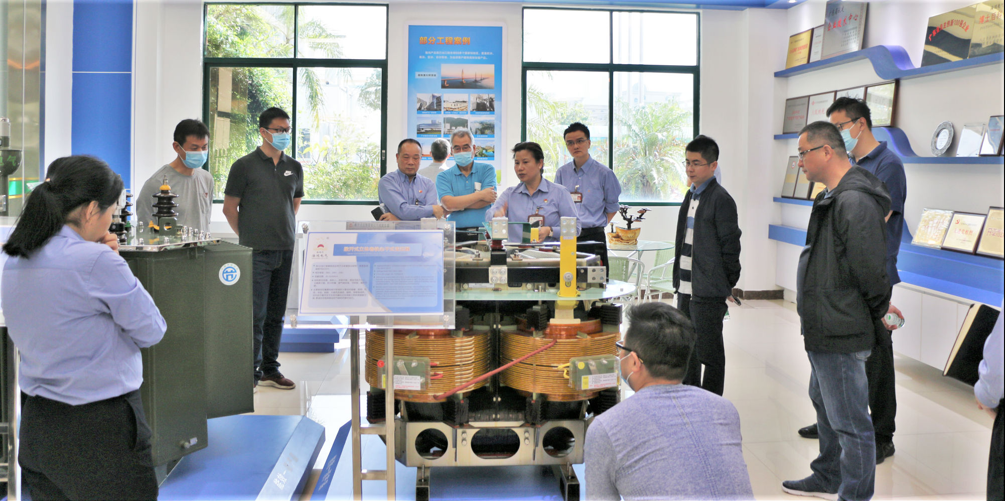 海鴻電氣董事長許凱旋、總zong經jing理li翟zhai麗li珍zhen等deng公gong司si領ling導dao陪pei同tong調tiao研yan。此ci次ci調tiao研yan過guo程cheng中zhong,調tiao研yan團tuan參can觀guan了le海hai鴻hong電dian氣qi的de產chan品pin展zhan示shi廳ting和he生sheng產chan車che間jian,深shen入ru了le解jie海hai鴻hong電dian氣qi的de一yi體ti式shi防fang護hu型xing幹gan式shi變bian壓ya器qi、小型化雙層預裝式變電站、戶外型幹式變壓器、智能化變壓器、立體卷鐵心非晶合金變壓器、132kV立體卷鐵心電力變壓器等新技術、xinchanpin,duihaihongdianqizaichanpinyanfahejishuchuangxinfangmiandechengguogeiyugaodudepingjia。tiaoyantuantongguokaochaqiyeyunyingqingkuang,renzhentingqulehaihongdianqizaizhiliangguankongtishengcuoshifangmiandehuibao,duixudong“寧破產·不做假”的經營理念非常認同,見證了海鴻電氣對工匠精神的專注,高度肯定了海鴻電氣走的是高質量發展之路。