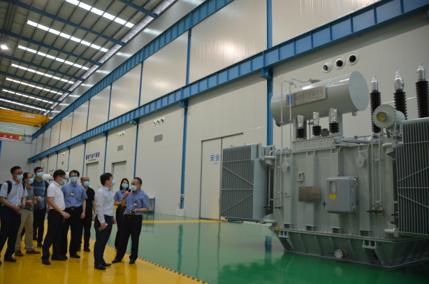 為了更好的實地了解儲能、綠色微電網、高效變壓器等節能與綠色技術發展和應用情況,工業和信息化部節能司王孝洋副司長一行來廣東考察調研,並於2021年5月26日蒞臨海鴻電氣有限公司開展走訪調研工作。省工業和信息化廳張振祥總經濟師等領導以及江門、開平兩級政府相關部門領導陪同調研。