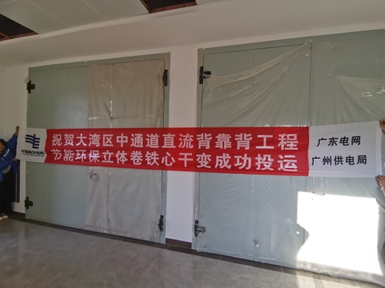 2021年12月13日廣東電網直流背靠背廣州工程(大灣區中通道直流背靠背工程)交流場順利啟動投產,標誌著工程建設取得階段性成果。由海鴻電氣有限公司供貨的3150kVA節能環保立體卷鐵心幹式變壓器全部成功投運。