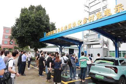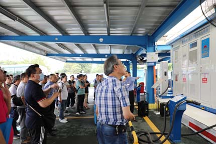 參訪團對緊湊式雙層預裝式變電站及集成一體式汽車充電站表現出濃厚興趣。兩款產品均采用雙層模塊化設計,大幅縮減設備占地麵積(緊湊式雙層預裝式變電站較傳統單層箱變占地麵積減少45%,集成一體式汽車充電站較充、配電設備分體充電站占地麵積減少56%),上層變壓器室可配置兩台敞開式立體卷鐵心幹式變壓器。產品均支持靈活擴展儲能或光伏模塊,為土地資源稀缺的香港提供高效配電、充電方案。