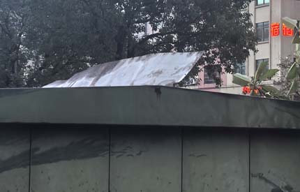某廠家陽江戶外配電箱變,頂部損壞(台風後實拍)