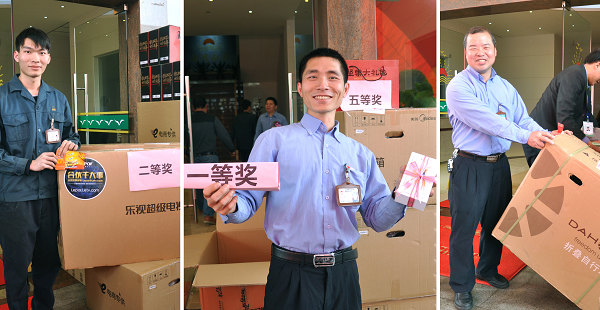隨後,健之源公司策劃的全員營銷大抽獎活動把廠慶日氣氛推向高潮,iphone6S,液晶大電視……獎品豐厚,抽獎環節掌聲不斷。