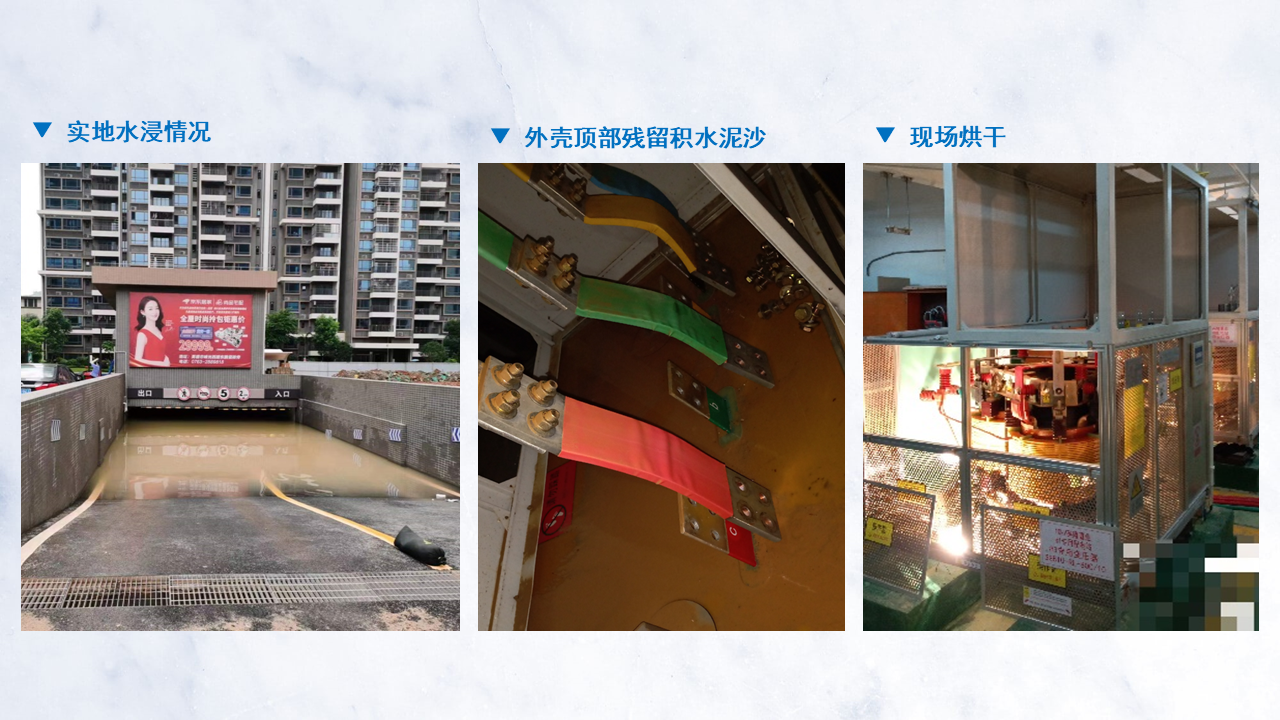 受持續性暴雨到大暴雨影響,某小區位於地下停車庫的配電房被洪水淹沒,5taichangkaiganbianjunbeimeidingjinpaosantiansanye。jingjiandanchulihou,xianchangjiancegexiangzhibiaozhengchang,kehuifuzhengchanggongdian,dadajiangdizaihouweixiuchengben,jiakuaifudianxiaolv。