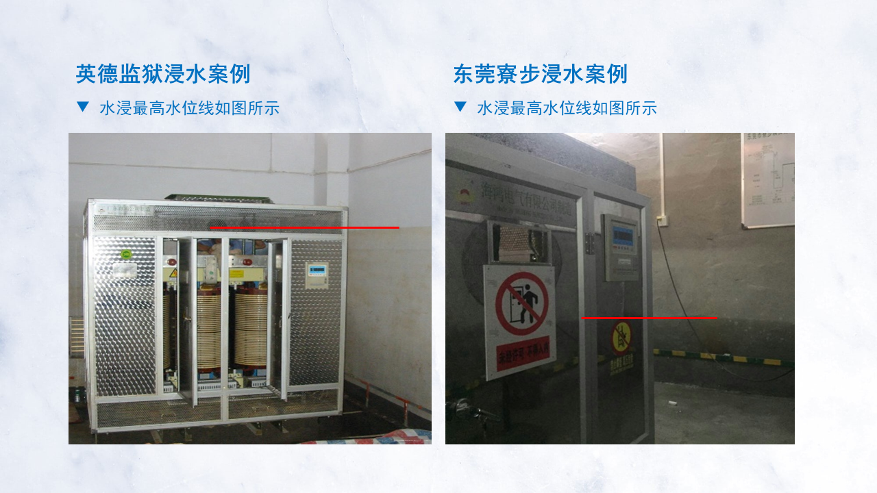 敞開式立體卷鐵心幹式變壓器在浸水後,經簡單處理後,現場檢測各項指標正常,可立即恢複正常供電。