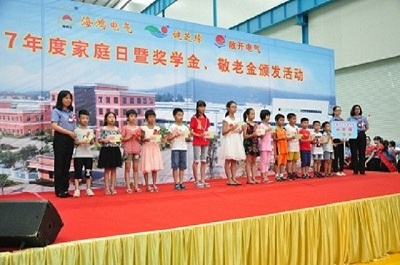 敬老愛幼一直是公司弘揚的企業文化。今年的家庭日活動,公司為391名同事子女頒發獎學金共14.89萬元、為377戶家庭70歲以上的長者發放敬老慰問金——每戶1000元,共37.7萬元。本次家庭日活動以“中華魂——輝煌與夢想”、“依法治企”為主題進行征文比賽,活動當天為征文獲獎者頒獎。企業效益與員工共享分享,公司從2000年開始每年舉辦家庭日活動,至今已頒發員工子女獎學金超110萬元、長者敬老慰問金超330萬元,體現了企業大家庭對員工家屬的關愛。