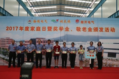 10月6日下午,在一片快樂溫馨的氛圍中,海鴻電氣有限公司、開平健之源保健食品有限公司、廣東敞開電氣有限公司“2017年度員工家庭日暨員工子女獎學金、敬老金頒發和征文頒獎活動”在海鴻電氣翠山湖總部110kV項目新廠房內拉開了序幕。當天超過1000個員工家庭約3000人相聚一堂、其樂融融、歡度愉快美好的時光。作為一年一度的家庭日活動,不僅增強企業、員工家屬間的雙向溝通與交流,也成為公司打造大家庭式和諧企業文化的重要平台。