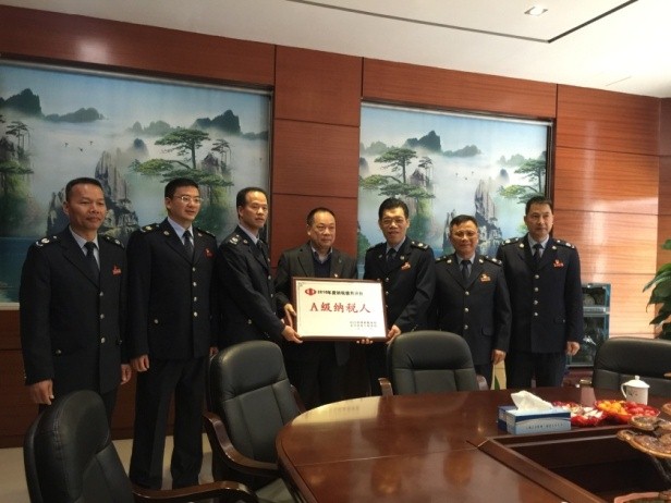 2018年1月18日,開平市國稅局、開平市地稅局相關領導到訪海鴻電氣有限公司,並向公司頒發了“A級納稅人”獎牌。海鴻電氣許凱旋董事長、翟麗珍總經理、餘衛萍財務總監等領導出席授牌儀式。
