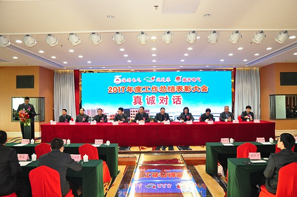 年度總結大會上,海鴻電氣翟麗珍總經理、健之源公司許克勇總經理對公司2017年的發展概況做了總結彙報: