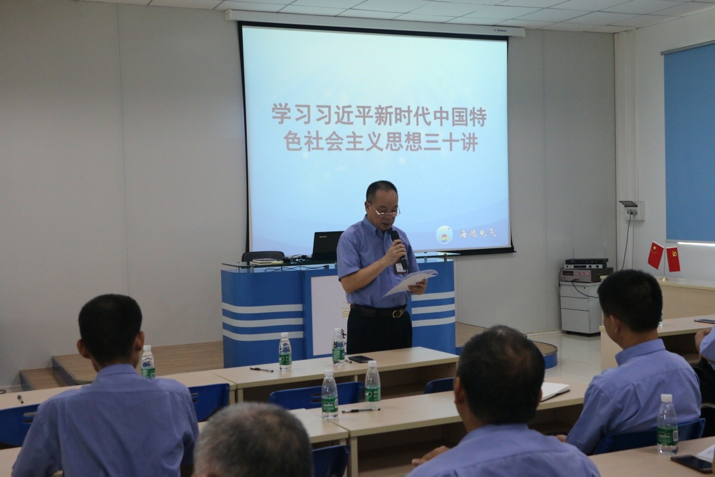會議在雄壯的國歌聲中拉開帷幕,海鴻黨支部結合上級黨組織精神要求,借助本次大會契機,組織黨員學習了《習近平新時代中國特色社會主義思想三十講》,觀看了紀錄片《榜樣》,通過投票表決方式,通過了兩位同事轉為預備黨員,一名預備黨員轉為正式黨員,並進行了黨員宣誓活動。