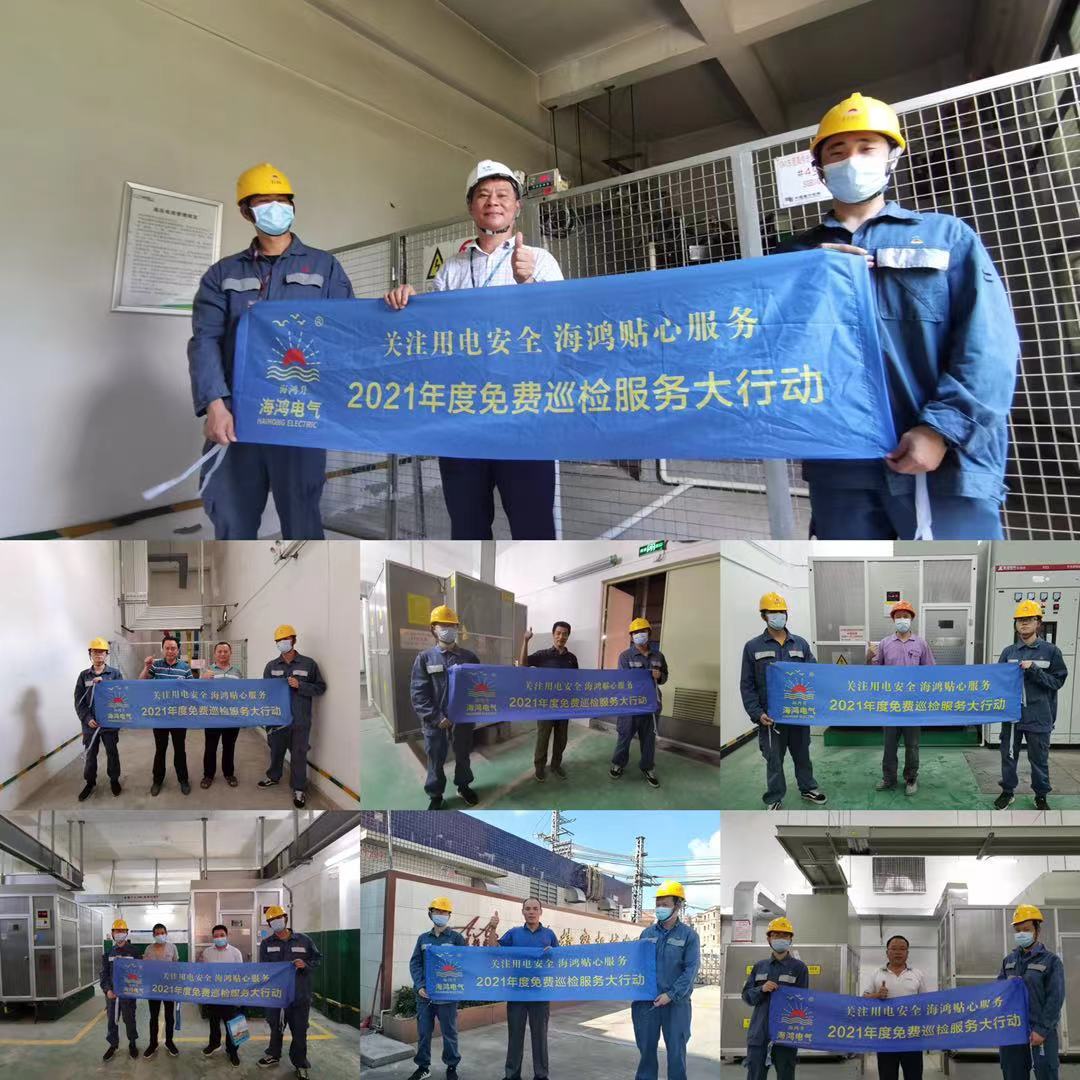 炎炎夏日,伴隨著蟬鳴聲如約而至;熱情服務,伴隨著用電高峰依約而來,海鴻電氣巡檢服務隊發出最強音浪:“請客戶放心,用電安全有海鴻”!年度免費巡檢服務是海鴻電氣打造的一張服務名片,今年6月,在各地用電負荷刷新記錄之時,2021年度海鴻電氣免費巡檢服務大行動以“關注用電安全,海鴻貼心服務”為主題,在大灣區前沿深圳、東莞拉開序幕。