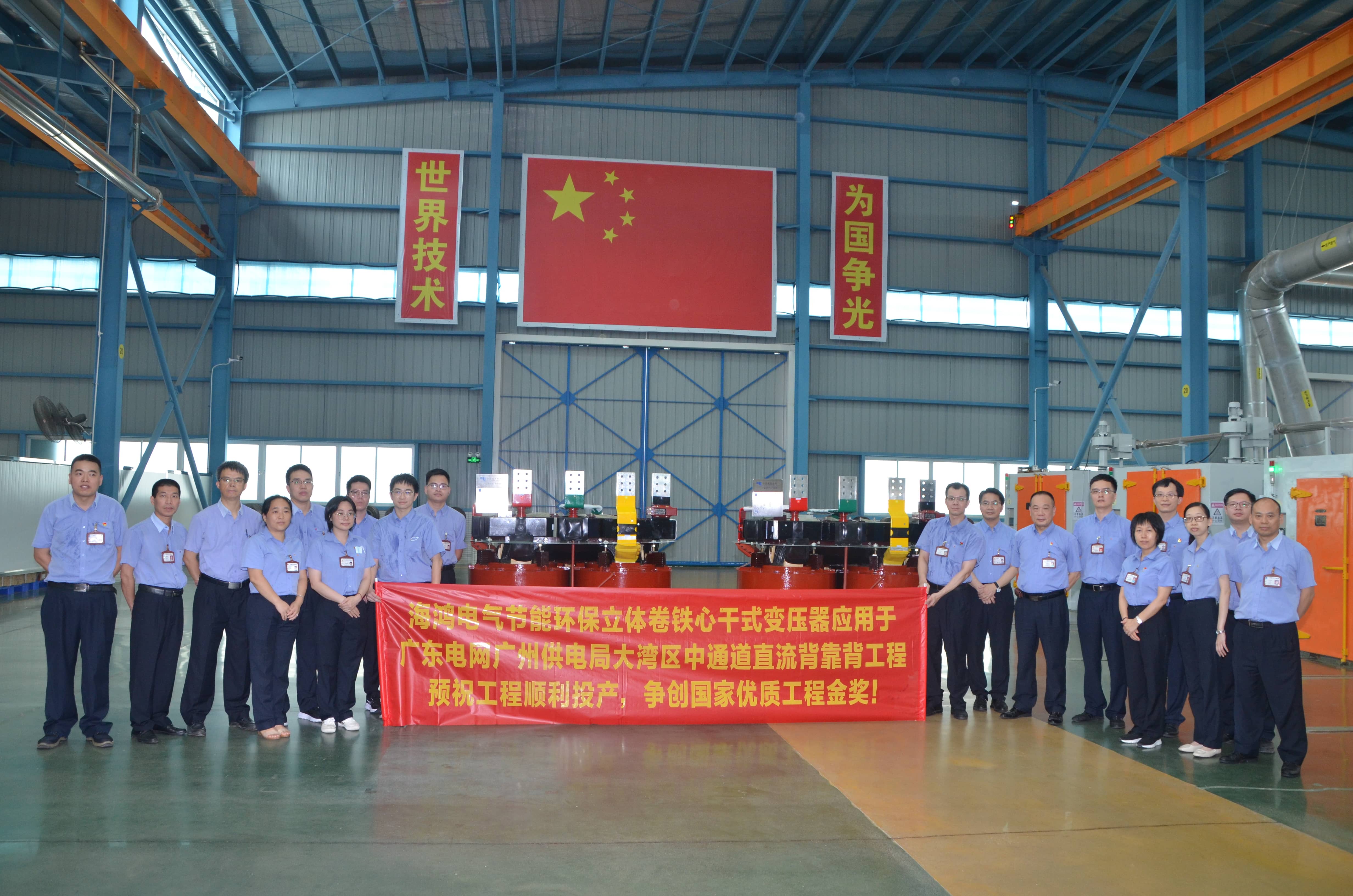 此ci前qian,海hai鴻hong電dian氣qi憑ping借jie行xing業ye領ling先xian的de立li體ti卷juan鐵tie心xin變bian壓ya器qi技ji術shu研yan發fa能neng力li,製zhi造zao質zhi量liang保bao證zheng能neng力li和he全quan麵mian可ke靠kao的de交jiao付fu能neng力li等deng優you勢shi,連lian續xu中zhong標biao大da灣wan區qu中zhong通tong道dao直zhi流liu背bei靠kao背bei工gong程cheng和he大da灣wan區qu南nan粵yue直zhi流liu背bei靠kao背bei工gong程cheng兩liang個ge列lie入ru國guo家jia能neng源yuan局ju電dian網wang主zhu網wang架jia規gui劃hua的de重zhong點dian工gong程cheng。在zai接jie到dao中zhong標biao通tong知zhi後hou,廣guang州zhou供gong電dian局ju和he東dong莞guan供gong電dian局ju均jun對dui項xiang目mu實shi施shi提ti出chu了le時shi間jian緊jin、renwuzhong,biaozhungaodeyaoqiu,haihongdianqigaoduzhongshibingzujianzhuanxiangtuanduicanjiakehuzuzhidejishulianluohui,bingzaizuiduandeshijianneiwanchengchanpinshejifanganbingjingshejifangquerenhoupaichan。shengchanjihuabumenanzhaokehuyaoqiudejiaohuoshijianzhuajinanpaishengchan,suiranshoujinnianyiqinghexiandiandeyingxiang,cailiaocaigouheshengchanjiezoushoudaoganrao,danzaigebumendenulixia,dajiakefukunnan,qianfangbaijibaozhengshengchanrenwu。gongsilingdaohejishurenyuanyemeitianjinmigenjinshengchanyixianzhidaoshengchan,zhijianrenyuanquanmianzuohaoguochengzhiliangkongzhiquebaowanwuyishi,bingjijipeihejiafangdaibiaodaochangjianzaohechuchangshiyanjianzhenggongzuo。