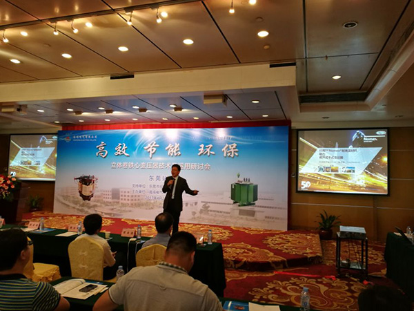 4月21日ri下xia午wu,為wei普pu及ji高gao效xiao節jie能neng設she備bei的de使shi用yong,推tui動dong高gao效xiao節jie能neng配pei電dian變bian壓ya器qi的de應ying用yong和he發fa展zhan,東dong莞guan市shi經jing信xin局ju聯lian合he海hai鴻hong電dian氣qi有you限xian公gong司si在zai東dong莞guan會hui展zhan國guo際ji大da酒jiu店dian,召zhao開kai“配電變壓器能效提升暨高效節能環保立體卷鐵心變壓器技術及運用研討會”。來自東莞市供電局、設計院、地產公司、電力安裝公司和大型用戶近200人參加此次會議。