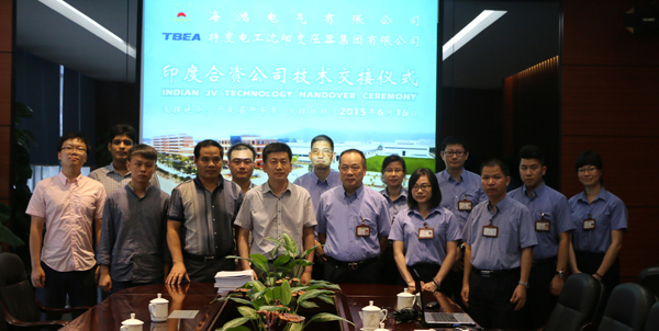6月16日,海鴻電氣有限公司、特(te)變(bian)電(dian)工(gong)沈(shen)陽(yang)變(bian)壓(ya)器(qi)集(ji)團(tuan)有(you)限(xian)公(gong)司(si)在(zai)海(hai)鴻(hong)電(dian)氣(qi)翠(cui)山(shan)湖(hu)總(zong)部(bu)二(er)樓(lou)會(hui)議(yi)室(shi)隆(long)重(zhong)舉(ju)行(xing)印(yin)度(du)合(he)資(zi)公(gong)司(si)技(ji)術(shu)交(jiao)接(jie)儀(yi)式(shi)。雙(shuang)方(fang)進(jin)一(yi)步(bu)鞏(gong)固(gu)了(le)技(ji)術(shu)交(jiao)流(liu),合(he)作(zuo)共(gong)贏(ying)的(de)理(li)念(nian)與(yu)誠(cheng)意(yi),對(dui)該(gai)項(xiang)目(mu)未(wei)來(lai)發(fa)展(zhan)前(qian)景(jing)的(de)充(chong)滿(man)信(xin)心(xin)。